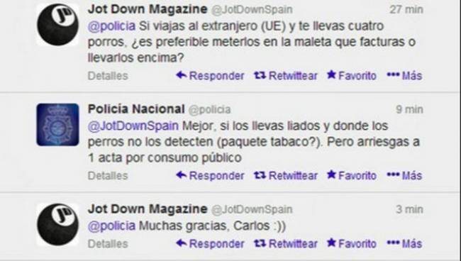Οι χρήστες του twitter δήλωσαν σοκαρισμένοι με το tweet της αστυνομίας! Προφανώς η ισπανική αστυνομία βαρέθηκε να συλλαμβάνει υπόπτους για λαθρεμπόριο ναρκωτικών και αποφάσισε να τους δώσει δέκα συμβουλές για το πώς θα καταφέρουν να κρυφτούν! Ένας χρήστης τους ρώτησε: «Αν ταξιδεύω στο εξωτερικό και θέλω να πάρω μαζί μου τέσσερα πακέτα με ναρκωτικά, να τα έχω πάνω μου ή να τα βάλω μέσα σε τσάντα;» Και η αστυνομία απάντησε : «Θα ήταν καλύτερα να τα βάλετε κάπου που να μην μπορεί να τα εντοπίσει ο ειδικά εκπαιδευμένος σκύλος! Δοκιμάστε ας πούμε να τα κρύψετε μέσα σε ένα πακέτο τσιγάρων!». Τα tweets προκάλεσαν θύελλα στο Twitter, και η Εθνική Αστυνομία έλαβε πολλούς νέους οπαδούς. Η αστυνομία διέγραψε λίγο αργότερα τα tweets από το λογαριασμό του Twitter, και προειδοποίησε ότι εκείνοι που συλλαμβάνονται να κάνουν χρήση ναρκωτικών θα τιμωρούνται! Μπράβο τους!