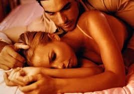 πάνω της, και την φιλά στο λαιμό της, στη συνέχεια, σηκώνεται και πηγαίνει στο μπάνιο.