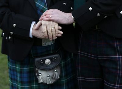 Παρά τις έντονες αντιδράσεις εκκλησιαστικών οργανισμών, η Σκωτία έγινε η 17η χώρα στον κόσμο που αναγνωρίζει το δικαίωμα των ομοφυλόφιλων στον γάμο.