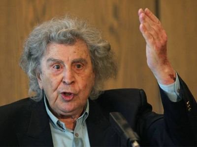 O Mίκης Θεοδωράκης κατά την είσοδό του στη Βουλή