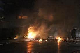 Όταν οι αστυνομικοί έκαναν χρήση δακρυγόνων, οι νεαροί απάντησαν πετώντας πέτρες και ξύλα, έριξαν κάδους στο οδόστρωμα και τους έβαλαν φωτιά. Οι αστυνομικοί τους απώθησαν προς την κατεύθυνση της πλατείας Αριστοτέλους. Ο πετροπόλεμος συνεχίζεται και η ατμόσφαιρα στο σημείο παραμένει τεταμένη.