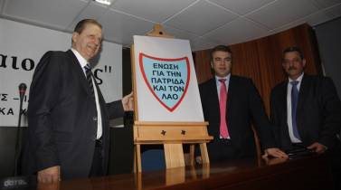 Οι Βύρων Πολυδωρας και Χρήστος Ζώης ανακήρυξαν το νέο κόμμα Ένωση, για την Πατρίδα και τον Λαό που προέκυψε από την συνεργασία τους και έχει έμβλημα την ασπίδα.