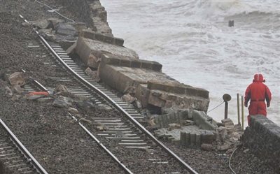 Στο Ντέβον από τα ισχυρά κύματα και τις έντονες βροχοπτώσεις κατέρρευσε τμήμα κυματοθραύστη που βρισκόταν κάτω από ράγες τρένου με αποτέλεσμα η σιδηροδρομική γραμμή να μείνει μετέωρη. Σύμφωνα με την ανακοίνωση των υπευθύνων του σιδηροδρόμου η γραμμή δεν πρόκειται να ανοίξει τουλάχιστον μέχρι τα τέλη Μαρτίου.