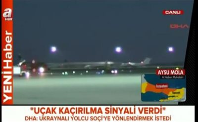 Σύμφωνα με ανεπιβεβαίωτες πληροφορίες των τουρκικών ΜΜΕ, ο Ουκρανός επιβάτης απείλησε να πυροδοτήσει μια βόμβα, αν το αεροσκάφος αυτό, στο οποίο επέβαιναν 110 άνθρωποι, δεν κατευθυνόταν προς το Σότσι της Ρωσίας, όπου αυτή τη στιγμή βρίσκεται σε εξέλιξη η τελετή έναρξης των Χειμερινών Ολυμπιακών Αγώνων. enikos