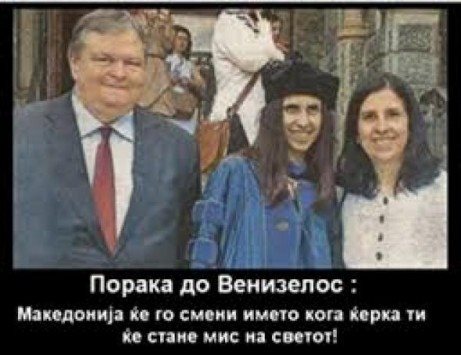 Σκόπια σε Βενιζέλο: "Η Μακεδονία θα αλλάξει όνομα όταν η κόρη σου θα γίνει Μις Κόσμος"