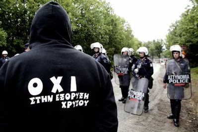 Δύο άτομα τραυματίστηκαν ελαφρά κατά τη διάρκεια της έντασης που σημειώθηκε νωρίτερα στις Σκουριές Χαλκιδικής, όπου πραγματοποιούν κινητοποίηση κάτοικοι της περιοχής που διαμαρτύρονται για την μεταφορά φορτίων της εταιρίας “Ελληνικός Χρυσός”.