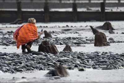 Η σφοδρή βροχόπτωση αποκάλυψε τα απομεινάρια αρχαίων δέντρων που χρονολογούνται από την εποχή του Χαλκού, και ήταν καλυμμένα με λάσπη και τύρφη, την οποία ξέπλυνε η καταρρακτώδης βροχή και τα κύματα. Δείτε τις φωτογραφίες