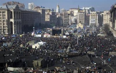 Στη Μαϊντάν, την εμβληματική πλατεία Ανεξαρτησίας, ήταν διάχυτη η αίσθηση της αποκλιμάκωσης της έντασης και της περισυλλογής. Νωρίς το πρωί εκατοντάδες πολίτες είχαν συγκεντρωθεί πλατεία τραγουδώντας τον εθνικό ύμνο. Άλλοι περιφέρονταν, με λουλούδια στα χέρια ή φωτογράφιζαν τα οδοφράγματα και τους κρανοφόρους διαδηλωτές που έπιναν τσάι γύρω από τα μαγκάλια.