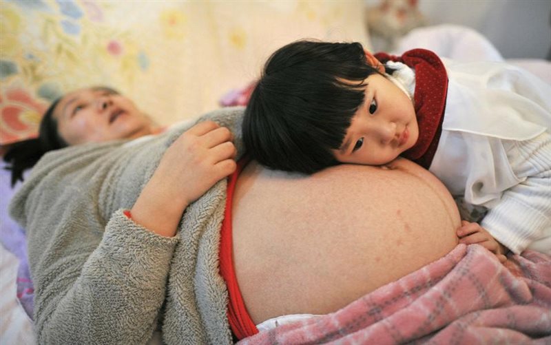 Η Li Yan αφήνει την κόρη της να ξαπλώσει πάνω στην κοιλιά της, λίγο πριν γεννήσει ένα υγιέστατο αγοράκι. Η οικογένεια της Li Yan, είναι η πρώτη στη Κίνα που πήρε επίσημη άδεια να αποκτήσει και δεύτερο παιδί και σύμφωνα με κυβερνητικές πηγές, εκατομμύρια οικογένειες μέχρι το τέλος του χρόνου θα αποκτήσουν το ίδιο δικαίωμα, θέτοντας και επισήμως τέλος στην πολιτική του ενός παιδιού. kathimerini