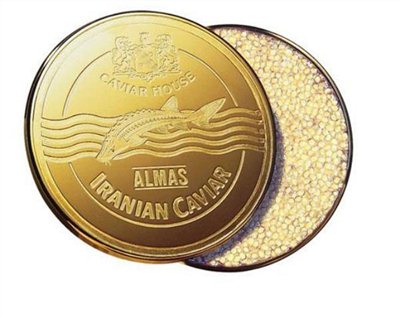 Η λέξη «Almas» σημαίνει «διαμάντι» και ταιριάζει απόλυτα με το ακριβότερο χαβιάρι στον κόσμο. Χώρα προέλευσης είναι το Ιράν, ενώ το μοναδικό κατάστημα στον κόσμο όπου πωλείται το χαβιάρι «Almas» είναι το «Caviar House & Prunier» στο Λονδίνο. Συσκευάζεται σε ολόχρυσο κουτί 24 Καρατίων, ενώ η τιμή του κιλού αγγίζει τα 25.000 δολάρια. Προσοχή: Η διάρκεια ζωής του είναι ένας χρόνος, γι’ αυτό βεβαιωθείτε -αν ποτέ αγοράσετε ένα ή σας το κάνουν δώρο… γάμου- ότι το έχετε καταναλώσει μέσα σε αυτό το χρονικό διάστημα, γιατί… δεν είναι για πέταμα!