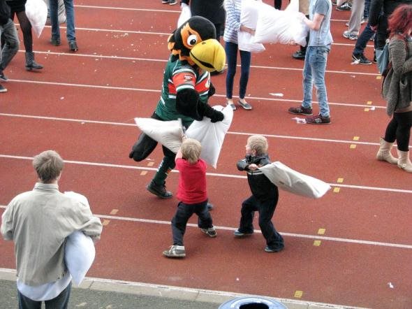 Στο γήπεδο "John Charles" του Λιντς συγκεντρώθηκαν περίπου 1000 άτομα, κουβαλώντας μαζί το μαξιλάρι τους, προκειμένου να συμμετάσχουν σε αυτή την πρωτότυπη εκδήλωση, με τίτλο "Fighting for a good cause" (Μαξιλαροπόλεμος για καλό σκοπό).