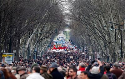 Χιλιάδες δημόσιοι υπάλληλοι διαδήλωσαν στους δρόμους της Λισαβόνας ανταποκρινόμενοι στο κάλεσμα του μεγαλύτερου συνδικάτου τους εναντίον των περικοπών στους μισθούς τους και για να απαιτήσουν την παραίτηση της συντηρητικής κυβέρνησης της Πορτογαλίας.
