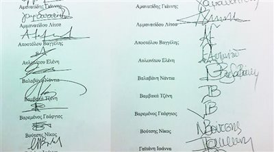 Προφανώς, όπως εξηγούν έμπειροι κοινοβουλευτικοί παρατηρητές την δουλειά της υπογραφής ανέλαβαν υπάλληλοι στο γραφείο του κόμματος με την άδεια των βουλευτών.
