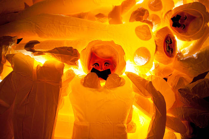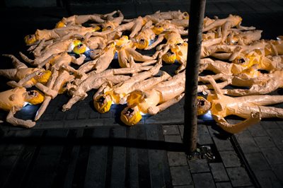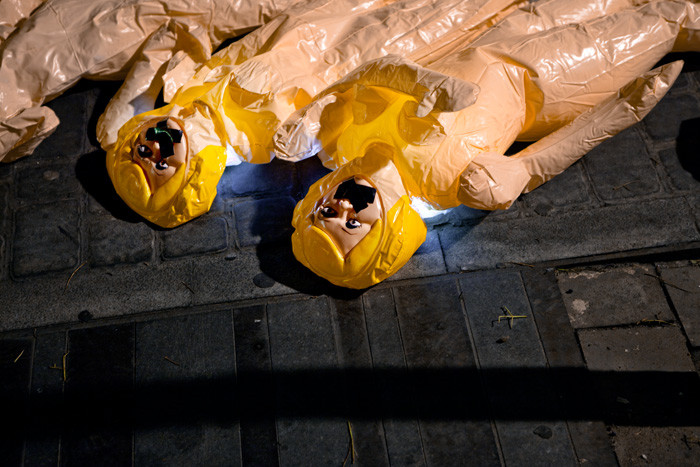 Οι κούκλες, τις οποίες είχαν... αραδιάσει έτσι ώστε να μοιάζουν έτοιμες να ποδοπατηθούν, ήταν φωτισμένες, ενώ στα στόματά τους τοποθέτησαν μαύρες ταινίες. Με αυτό τον τρόπο οι ακτιβιστές της τέχνης θέλησαν να στρέψουν την προσοχή στο νόμο, σύμφωνα με τον οποίο η άμβλωση είναι παράνομη, εκτός αν αφορά θύμα βιασμού ή η εγκυμοσύνη απειλεί σοβαρά την υγεία της γυναίκας.