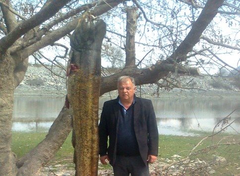 Στην παραπάνω φωτογραφία βλέπετε τον Προϊστάμενο Αλιείας της Περιφέρειας Δυτικής Μακεδονίας, κ. Γιώργο Μαργαρίτη να ποζάρει δίπλα στον γουλιανό. kozanimedia - star