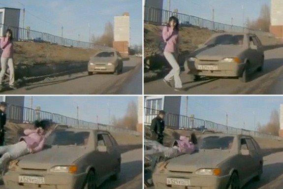 Αυτοκίνητο παρασύρει και εκσφενδονίζει γυναίκα στον αέρα!