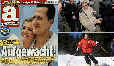 Στο εξώφυλλο του περιοδικού φιλοξενείται η φωτογραφία του Μίκαελ Σουμάχερ με τη γυναίκα του Κορίνα, έχοντας ως τίτλο “Ξύπνησε!”.