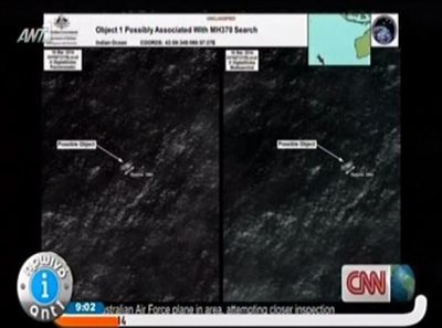 Ωστόσο επί του παρόντος, παρά τα εκατοντάδες επιπλέοντα αντικείμενα που έχουν εντοπιστεί από εικόνες δορυφόρου στο νότιο Ινδικό Ωκεανό, τα πλοία των οκτώ χωρών που λαμβάνουν μέρος στις επιχειρήσεις δεν περισυνέλεξαν τίποτα που να ανήκει πράγματι στα συντρίμμια του Boeing 777 της Malaysia Airlines.