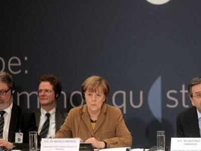 «Οι μεταρρυθμίσεις τις οποίες έχει κάνει ως τώρα η Ελλάδα αξίζουν αναγνώριση. Και οι αγορές τιμούν αυτή την εξέλιξη: ελληνικές τράπεζες μπορούν στο μεταξύ να χρηματοδοτηθούν από την αγορά. Η Ελλάδα επέστρεψε την Πέμπτη στις χρηματαγορές. Για πρώτη φορά ιδιώτες επενδυτές εμπιστεύθηκαν στη χώρα και πάλι χρήματα, μακροπρόθεσμα. Σύμφωνα με στοιχεία του υπουργείου Οικονομικών στην Αθήνα, συγκεντρώθηκαν τρία δισεκατομμύρια ευρώ από την αγορά ομολόγων. Αυτό είναι περίπου μισό δισεκατομμύριο περισσότερο από ό,τι αναμενόταν» αναφέρει η Καγκελαρία και προσθέτει ότι «το 2014 η ελληνική οικονομία βρίσκεται σε ένα σημείο καμπής: έπειτα από μακρά φάση ύφεσης, η τρόικα υπολογίζει με θετικά πρόσημα ανάπτυξης».