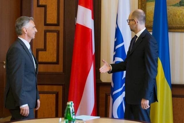 Στην παρακάτω φωτογραφία βλέπουμε τον πρόεδρο της Ελβετίας, Ντιντιέ Μπουρκχάλτερ, να χαιρετά τον πρόεδρο της Ουκρανίας, Αρσένι Γιατσένιουκ, κατά τη διάρκεια μιας συνάντησης στο Κίεβο. Με την πρώτη ματιά, δεν φαίνεται κάτι παράξενο στην εικόνα, ωστόσο, με μια δεύτερη μπορεί να δει κανείς ότι το Κίεβο υπέπεσε σε μια γκάφα ολικής καθώς αντί να υποδεχτεί τον πρόεδρο της Ελβετίας με τη σημαία της χώρας του, έβαλαν τη σημαία της Δανίας.Μάλιστα, ο ίδιος ο Μπουρκχάλτερ ήταν εκείνος που ενημέρωσε τον Γιατσένιουκ για το λάθος των υπαλλήλων του.Και μπορεί να μην δημιουργήθηκε μεγαλύτερο πρόβλημα και ο Ελβετός πρόεδρος να αντιμετώπισε με ψυχραιμία το περιστατικό, ωστόσο, η γκάφα των Ουκρανών έκανε τον γύρο του Διαδικτύου και σχολιάστηκε καυστικά από τα ΜΜΕ της χώρας. protothema