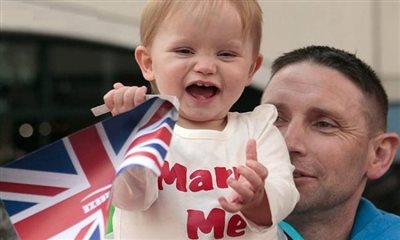 Τι και αν είναι μόλις... 8 μηνών ο Πρίγκιπας Geοrge; Είναι ήδη... καρδιοκατακτητής. Και όχι μόνο αυτό, αλλά δέχεται και προτάσεις γάμου. Για παράδειγμα ένα αξιολάτρευτο κοριτσάκι στο Γουέλινγκτον, της Νέα Ζηλανδίας φόρεσε μπλουζάκι που πάνω του έγραφε: «Παντρέψου με Πρίγκιπα Γεώργιε». Μάλιστα το κοριτσάκι αυτό το είδε και ο Πρίγκιπας Γουίλιαμ και συγκινήθηκε και είπε στους γονείς του ότι ήταν υπέροχο και μάλιστα φώναξε την Κέιτ να το δει. gossiptv