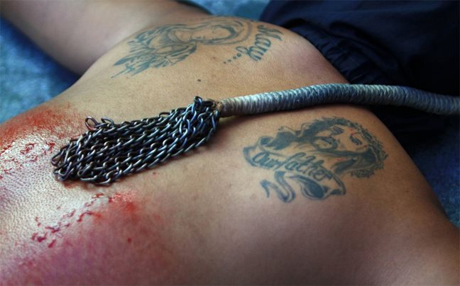 Με τις πλάτες τους γεμάτες αίματα και τα κεφάλια τους καλυμμένα, πιστοί Καθολικοί στις Φιλιππίνες βγήκαν για άλλη μια φορά στους δρόμους της πόλης San Fernando, αναβιώνοντας το τελετουργικό του αυτομαστιγώματος.