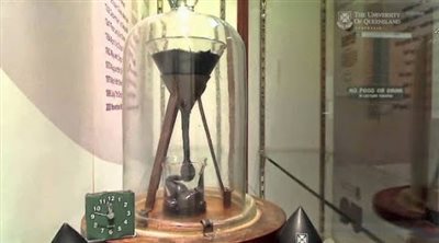 Το πείραμα στήθηκε από τον φυσικό Τόμας Πάρνελ προκειμένου να δείξει ότι, σε βάθος χρόνου, τα στερεά υλικά όπως η πίσσα ρέουν σαν υγρά.