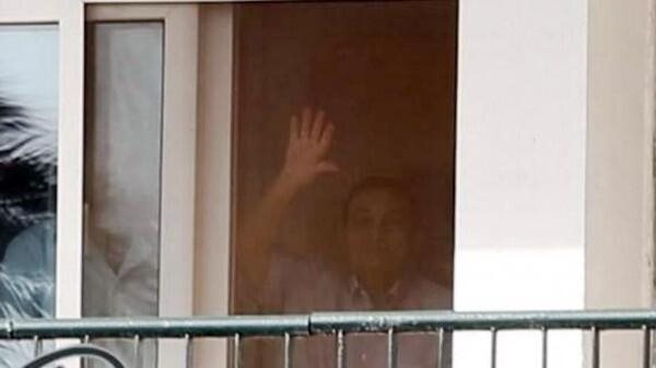 Ο Μουμπάρακ χαιρετάει από το παράθυρο