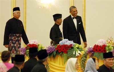 Αύριο, Κυριακή, ο Ομπάμα θα έχει συνομιλίες με τον Νατζίμπ Ραζάκ και θα επισκεφθεί το Εθνικό Τέμενος της Κουάλα Λουμπούρ.