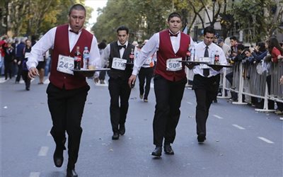 Τον ορισμό της γρήγορης εξυπηρέτησης αποτελούν περίπου 400 σερβιτόροι και σερβιτόρες, οι οποίοι δοκίμασαν την ταχύτητά τους σε αγώνα δρόμου στο Μπουένος Άιρες, όπου δοκίμασαν να διασχίσουν μία απόσταση 3 χιλιομέτρων, κρατώντας ένα δίσκο με ποτά.