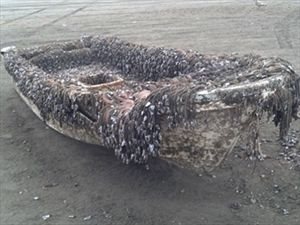 Μία μικρή βάρκα, γεμάτη πεταλίδες -πουμοιάζει με... θαλάσσιο τέρας - ξεβράστηκε πρόσφατα στις ακτές της Ουάσινγκτον , προερχόμενη από... την Ιαπωνία, όπουπαρασύρθηκε από το το τσουνάμι το Μάρτιο του 2011! Η 20 ποδών λέμβος εκβράστηκε στις 7 Απριλίου. Όπως διαπιστώθηκε, η βάρκα προερχόταν από μια ιαπωνική πόλη που ερημώθηκε και διένυσε μια απόσταση 4.000 μιλίων στην Ειρηνικό ωκεανό. Συγκεκριμένα, ανήκε σε ένα σχολείο της πόλης Ρικουζεντακάτα, η οποία καταστράφηκε από σεισμό των 9 Ρίχτερ και το τσουνάμι που ακολούθησε. Η Εθνική Ωκεανολογική Υπηρεσία επιβεβαίωσε την προέλευση της βάρκας την περασμένη Πέμπτη μετά από επικοινωνία με το ιαπωνικό προξενείο στο Σαν Φρανσίσκο.Πρόκειται για το 27ο αντικείμενο που παρασύρθηκε από το τσουνάμι και έφτασε στις ΗΠΑ , με τα υπόλοιπα να έχουν ξεβραστεί στην Αλάσκα, την Κολούμπια, τη Χαβάη, το Όρεγκον και την Ουάσινγκτον. nooz