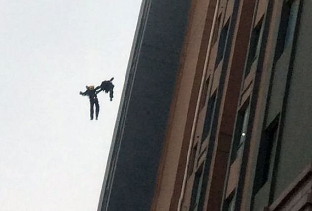 Δυστυχώς, όμως, φαίνεται ότι το βάρος του φίλου του τράβηξε και τους δύο στο κενό και πιασμένοι χέρι-χέρι ταξίδεψαν στο θάνατο, πέφτοντας στο πεζοδρόμιο...