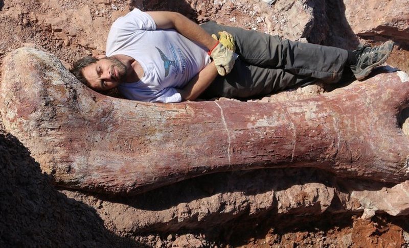 Τα απολιθωμένα οστά του μεγαλύτερου δεινόσαυρου στον κόσμο πιστεύει ότι ανακάλυψε στην Αργεντινή μία ομάδα παλαιοντολόγων.