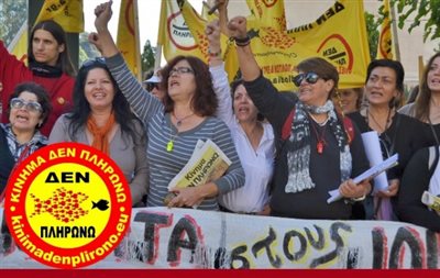 Το Κίνημα Δεν Πληρώνω με ανακοίνωσή του εκφράζει την αμέριστη συμπαράσταση του, στις απολυμένες καθαρίστριες του Υπουργείου Οικονομικών.