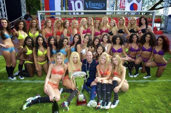 Σε περίπου δύο εβδομάδες από τώρα ξεκινά στη Βραζιλία το Μουντιάλ. Τα βλέμματα όμως των οπαδών του πλανήτη αλλά και των οπαδών του ωραίου φύλου είναι στραμμένα στην Ολλανδία όπου βρίσκεται σε εξέλιξη μια άλλη διοργάνωση. Το Παγκόσμιο Κύπελλο Εσωρούχων! Στη διοργάνωση πήραν μέρος η Ολλανδία, η Βραζιλία, η Νότια Κορέα, η Αλγερία, η Ισπανία, η Γερμανία, η Ιταλία και η Ρωσία ενώ όπως σημειώνει ο enikos.gr διαιτητής στους αγώνες ήταν ο παλαίμαχος Ολλανδός διεθνής άσος Άντι Φαν Ντερ Μέιντε.