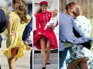 Και η αποκάλυψη των οπισθίων της στην περιοδεία της σε Αυστραλία και Νέα Ζηλανδία δεν ήταν το μόνο στιλιστικό ατύχημα. Παραλίγο να συμβεί το ίδιο την πρώτη ημέρα του ταξιδιού. Την ώρα που η δούκισσα του Κέιμπριτζ έβγαινε από το αεροπλάνο φορώντας ένα... αεράτο κόκκινο φόρεμα και κρατώντας στα χέρια τον τρίτο διάδοχο του βρετανικού θρόνου, ο αέρας της σήκωσε ξανά το φουστάνι αποκαλύπτοντας τα πόδια της. Λίγο ακόμη και θα βλέπαμε και το εσώρουχό της.