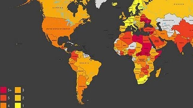 Σε αυτή την κατάταξη φαίνεται ότι η Ισπανία ανήκει στη δεύτερη ομάδα (επανειλημμένες παραβιάσεις των δικαιωμάτων) ενώ αρνητικές εκπλήξεις, όπως διευκρίνισε ο Γενικός Γραμματέας είναι ότι οι Ηνωμένες Πολιτείες ανήκουν στην τέταρτη ομάδα (συστηματικές παραβιάσεις των δικαιωμάτων) μαζί με χώρες όπως ο Λίβανος και το Πακιστάν, και ότι η Ελλάδα έχει τοποθετηθεί στην τελευταία ομάδα (χωρίς εγγυημένα δικαιώματα) μαζί με τη Λιβύη, την Παλαιστίνη και τη Συρία.