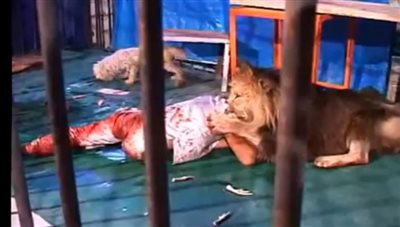 Δείτε το παρακάτω σοκαριστικό βίντεο όπου ένας απο τους υπεύθυνους ενός τσίρκο, για άγνωστο μέχρι στιγμής λόγο, βρέθηκε στο κλουβί του λιονταριού και εκείνο του άρπαξε το χέρι. Πανικόβλητοι οι συνεργάτες του, προσπαθούν να ηρεμήσουν το άγριο ζώο και έδειχναν να τα καταφέρνουν μέχρι τη στιγμή που με μια απότομη κίνηση, τραβάει το θύμα του μακριά από τα κάγκελα, για να του δώσει το χαριστικό δάγκωμα στο λαιμό. Το τέλος στο φρικτό μαρτύριο ήρθε να δώσει ένας από τους άντρες της ασφάλειας, όπου και σκότωσε το λιοντάρι. Ήταν όμως αργά, ο άτυχος άντρας είχε παραδοθεί στις μεγάλες πληγές του. ΣΚΛΗΡΟ ΒΙΝΤΕΟ - ΝΑ ΜΗΝ ΤΟ ΔΟΥΝ ΠΑΙΔΙΑ