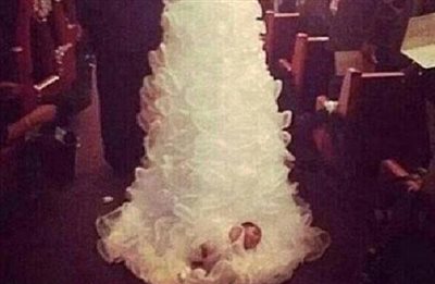 Θα τρελαθούμε - Έραψε το μωρό στο νυφικό κ το έσερνε!