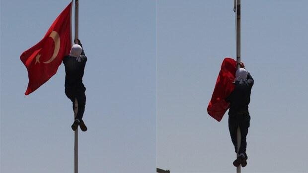 Ένας μασκοφόρος κατέβασε την τουρκική σημαία από την αεροπορική βάση του Ντιγιάρμπακιρ, στο πλαίσιο επεισοδίων μετά από κηδεία διαδηλωτή. Οι αρχές της βάσης υποστήριξαν ότι οι στρατιώτες επέδειξαν ψυχραιμία, και δεν αντέδρασαν βίαια, παρά μόνο πυροβόλησαν δυο φορές στον αέρα. Ο δράστης όπως διαβάσαμε στο ysterografa, ήταν νεαρής ηλικίας.