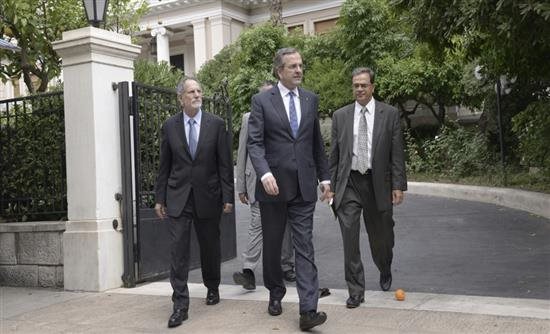 Τον νέο υπουργό Οικονομικών συνόδευσε στο Μέγαρο Μαξίμου ο Γ. Στουρνάρας ο οποίος ανέλαβε την διοίκηση της Τράπεζας της Ελλάδος. «Ήρθα να ενημερώσω τον πρωθυπουργό και τον υπουργό Οικονομικών για τις συνομιλίες τις διμερείς που είχαμε στη Γερμανία με τον κ. Σόιμπλε». Αμετακίνητοι Μητσοτάκης – Λοβέρδος