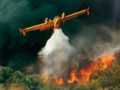 Λίγο μετά τις 08:30 έκαναν τις πρώτες ρίψεις στο σημείο τα δύο καναντέρ που συμμετέχουν στην κατάσβεση της φωτιάς.
