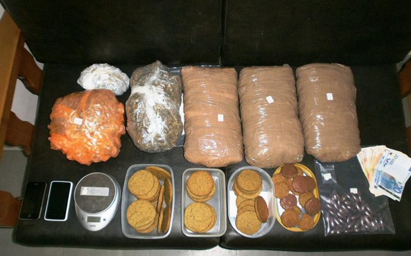Σύμφωνα με την Αστυνομία ο 44χρονος, που χαρακτηρίζεται από την αστυνομία ως επικεφαλής δικτύου διακίνησης ποσοτήτων κάνναβης, κατείχε 12 μπισκότα κάνναβης, 38 κάψουλες που περιείχαν την ίδια ναρκωτική ουσία, μικροποσότητα κοκαϊνης και άλλα 4 κιλά περίπου κάνναβης, καθώς επίσης και χρήματα προερχόμενα από διακίνηση.