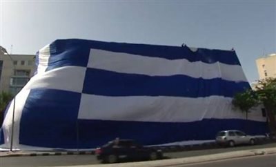 Στο πλευρό των διεθνών μας βρίσκονται και οι Ελληνοκύπριοι – Με την μεγαλύτερη σημαία που έχει κατασκευαστεί ποτέ, στέλνουν το δικό τους μήνυμα Θετική ενέργεια στην Εθνική ομάδα για πρόκριση στον αποψινό αγώνα με την Κόστα Ρίκα στους «16» του Μουντιάλ στέλνει η Κύπρος. Η συγκεκριμένη σημαία τοποθετήθηκε σε ένα κτήριο στην καρδιά της Λευκωσίας το απόγευμα του Σαββάτου και έχει εμβαδόν 1.650 τετραγωνικά μέτρα, ενώ ζυγίζει 280 κιλά. Η επιχείρηση τοποθέτησης της γιγαντιαίας ελληνικής σημαίας άρχισε το πρωί και ολοκληρώθηκε έπειτα από περίπου έξι ώρες, με πρωτοβουλία του πρώην ποδοσφαιρικού παράγοντα Χριστόφορου Τορναρίτη. Μάλιστα χρειάστηκε να εργαστούν 12 άτομα προκειμένου να τοποθετηθεί η σημαία, ενώ η κατασκευή της κόστισε περίπου 4.000 ευρώ.