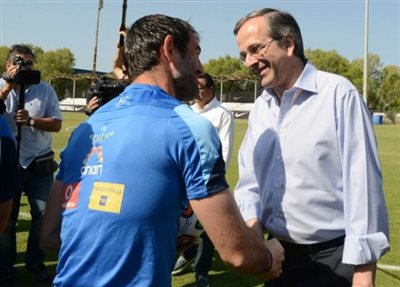 Ο πρωθυπουργός Αντώνης Σαμαράς, σύμφωνα με πληροφορίες του pamesports, επικοινώνησε χθες αργά το βράδυ μέσω της ΕΠΟ με τους παίκτες της Εθνικής Ομάδας ποδοσφαίρου που βρίσκονται στη Βραζιλία. Ο Αντώνης Σαμαράς διαβεβαίωσε ότι θα κάνει ό,τι είναι δυνατόν, ό,τι περνάει από το χέρι του, ώστε σύντομα η Εθνική Ομάδα να αποκτήσει το προπονητικό κέντρο που της αρμόζει.