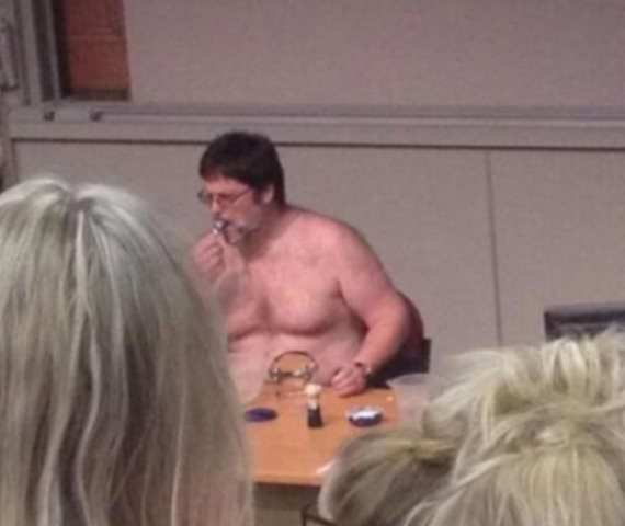 Σε μία προσπάθεια να διδάξει στους μαθητές του τον ανταγωνιστικό χώρο των πωλήσεων, ο καθηγητής Ίαν Λαμόντ έβγαλε τα ρούχα του και έμεινε μόνο με το εσώρουχο μέσα στο αμφιθέατρο. Ο καθηγητής του Πανεπιστημίου Λιντς στην Αγγλία έβγαλε το παντελόνι και το πουκάμισο του, έμεινε με το γκρι εσώρουχο του και στη συνέχεια έκατσε στην έδρα και άρχισε να ξυρίζεται. Τα social media γέμισαν με φωτογραφίες και αρνητικά σχόλια περί του γυμνισμού του καθηγητή, τα οποία δημοσίευσαν οι μαθητές, εκφράζοντας την σύγχυσή τους. Μια μαθήτρια σημείωσε: «πραγματικά δεν έχω καμία ιδέα για πιο λόγο ο καθηγητής μου έχει γδυθεί και ξυρίζει το πρόσωπό του. Επιθυμεί να περάσει κάποιο μήνυμα, το οποίο δεν έχω ιδέα πιο μπορεί να είναι». Μέχρι στιγμής δεν έχει γίνει γνωστό αν ο καθηγητής θα απομακρυνθεί από το πανεπιστήμιο καθώς η ηγεσία ισχυρίζεται πως ψάχνει περεταίρω πληροφορίες για το περιστατικό.
