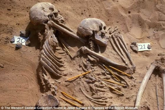 Ανθρώπινα λείψανα που χρονολογούνται από το 11.000 π.Χ. βρέθηκαν στην έρημο Σαχάρα. Οι σκελετοί, σύμφωνα με τα διεθνή μέσα, εκτιμάται ότι ανήκουν σε πολεμιστές που συμμετείχαν σε μάχες ανάμεσα σε φυλές. Πρόκειται για δύο σκελετούς ανθρώπων που σκοτώθηκαν σε μαζική δολοφονία και οι οποίοι, όπως εκτιμούν οι επιστήμονες, είχαν σκοτώσει τουλάχιστον 26 εχθρούς! Τα οστά θα εκτεθούν στο Αρχαιολογικό Μουσείο της Αιγύπτου μαζί με τα αυτοσχέδια όπλα από τα οποία σκοτώθηκαν. apocalypsejohn