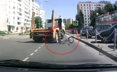 Βίντεο Σοκ - Φορτηγό πατάει ποδηλάτισσα