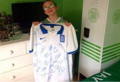 Στα χέρια του μικρού Jay η υπογεγραμμένη φανέλα της Εθνικής