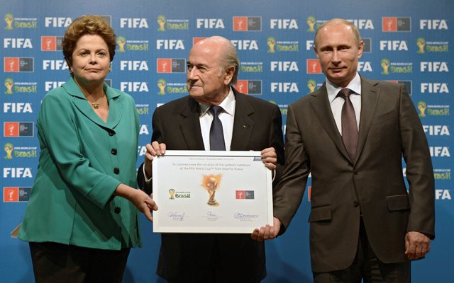 Φυσικά, υπάρχει και το ζήτημα της Ουκρανίας, ένα κομμάτι της οποίας η Ρωσία προσάρτησε. Ο υπουργός αθλητισμού της Ρωσίας, Βιτάλι Μούτκο, προτίμησε να υποβαθμίσει το γεγονός: «Είναι ένα διαφορετικό ζήτημα, που δεν θα επηρεάσει τις ετοιμασίες για το Παγκόσμιο Κύπελλο». Και ο Βλάντιμιρ Πούτιν εμφανίζεται αισιόδοξος: «Το ποδόσφαιρο συμβάλλει στην επίλυση των κοινωνικών προβλημάτων. Στόχος μας είναι να εξασφαλίσουμε τις καλύτερες δυνατές συνθήκες για τους προπονητές, τους παίκτες, τους ειδικούς, και τους φιλάθλους».